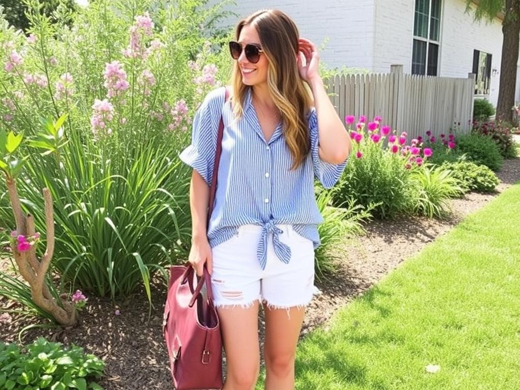 - Рабочий стиль в летний день: светлая сорочка, брюки‑клеш или льняные culottes, элегантные сандалии на устойчивом каблуке.